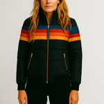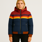 Graphique, légère et ultra-douillette, cette Doudoune Rétro à Rayures combine style vintage et performance moderne. Ses bandes multicolores donnent du peps à vos tenues, tandis que le garnissage isolant vous garde bien au chaud sans vous alourdir. Capuche enveloppante, zip robuste et finitions bord-côte : tout est pensé pour un confort parfait en ville comme en escapade.